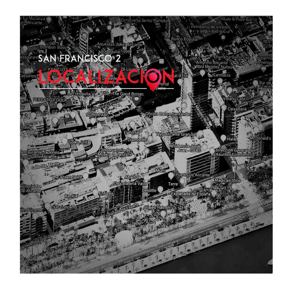 Idea y presentación para proyecto de rehabilitación, diseño y ejecución de un edificio de 6 plantas en el centro de Alicante. Restaurante, show coocking, bar, terraza, 4 apartamentos de lujo y chillout.